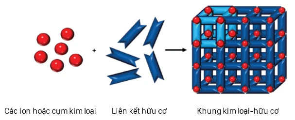 MOFs có cấu trúc đặc biệt với các ion kim loại tạo thành các nút liên kết và các phân tử hữu cơ tạo